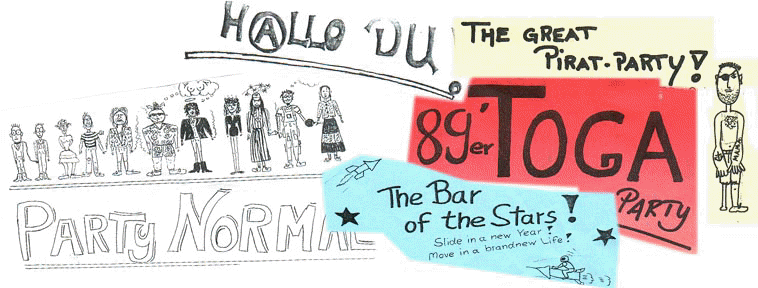 ab hier stelle ich einige unserer wilden "Themen-Partys" vor, die in die Café Riebel Analen eingegangen sind und von denen wir auch heute noch gerne reden. Schade ist, dass wir heutzutage solche Partys nicht mehr zustande bringen, das ist halt der Tribut des Erwachsenseins.